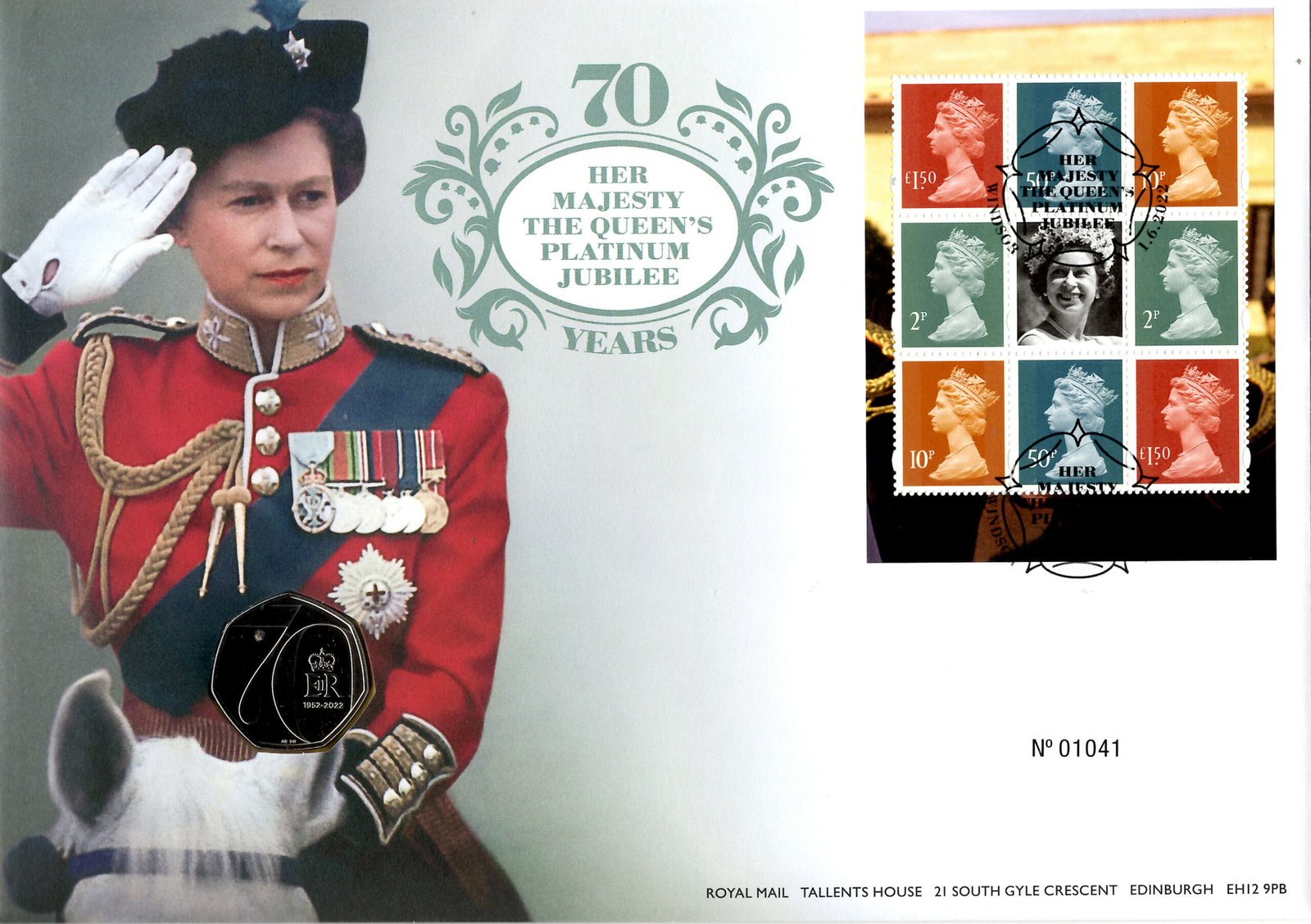 2022 GB Her Majesty The Queen’s Platinum Jubilee Brill Unc 50p Coin Cover 1.6.22 PNC